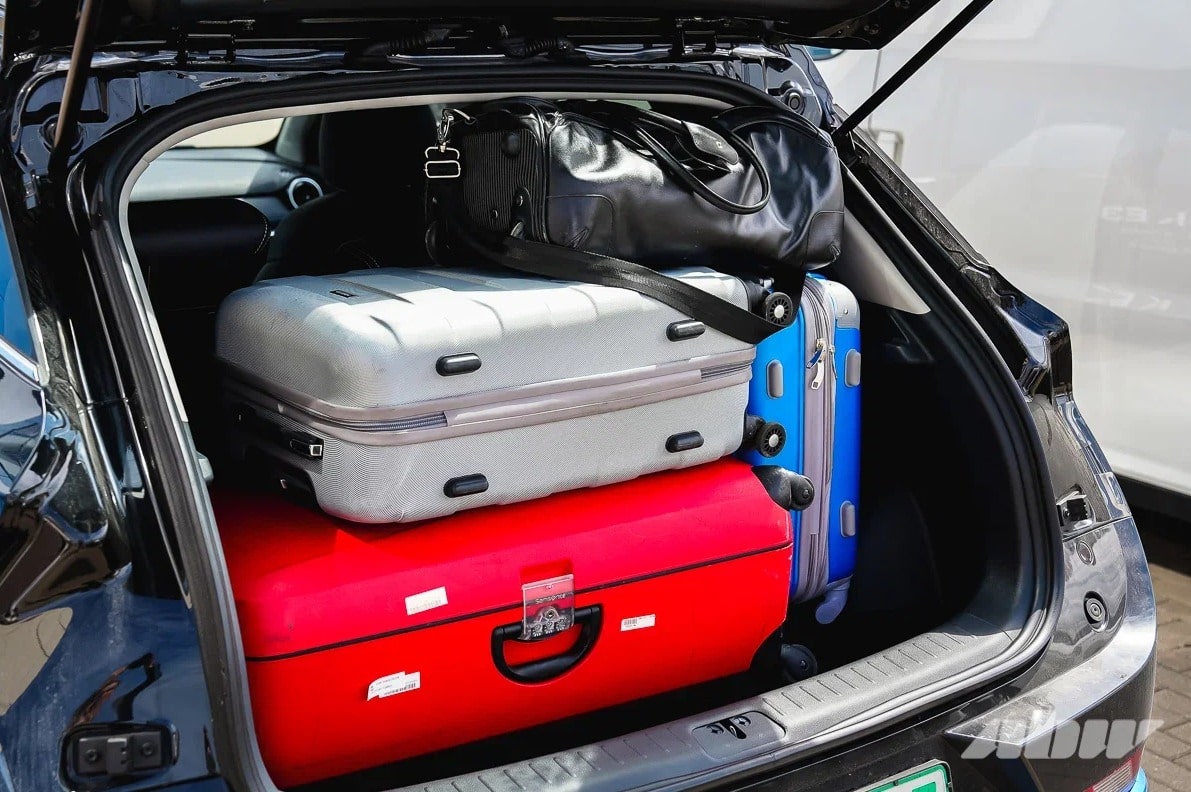 Со старта около дилерского центра в Ждановичах начинаем играться с багажом. На самом деле, мы утрируем: багажник Е3 рассчитан на 385 литров с поднятыми сиденьями, а если сложить спинки, то можно получить все 1228. Но когда вы видели такси со сложенными сиденьями? Поэтому мы играем в тетрис чемоданами на сложности «хардкор»: пытаемся поместить три чемодана в багажник компактного кроссовера, не лишая его пассажирских мест.